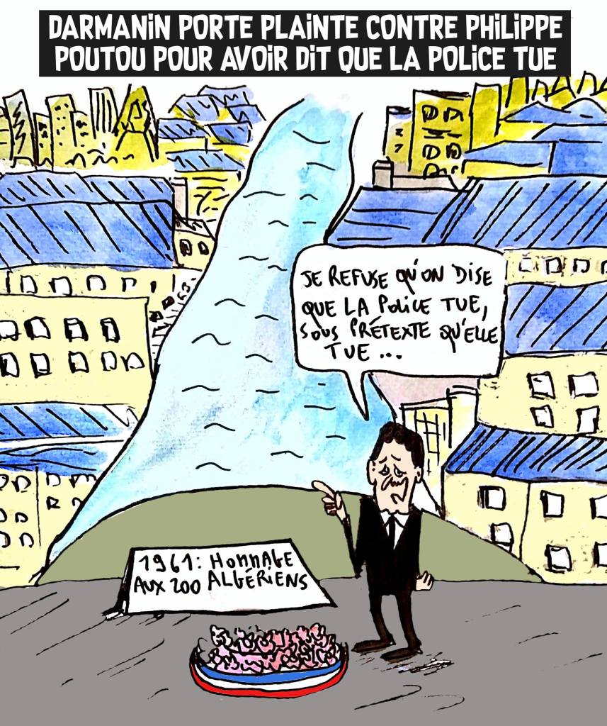 Ce weekend, Gérald Darmanin a porté plainte contre Philippe Poutou pour avoir dénoncé les violences policières. Dans le même temps, un hommage vite torché du préfet Lallement aux 200 algériens jetés à l’eau sous Papon, relaté dans un article que j’ai mis en lien juste en-dessous… Aucune famille n’a été invitée, une gerbe et au revoir… Un peu léger pour un crime d’Etat (qualification toujours refusée par l’Etat pour cet événement)